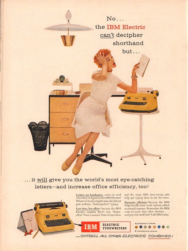 Thank all the gods and labor activists for the week-end. And I had so much fun trying to find this advertisement. Note how her shoes matches her typewriter which is pure magic.