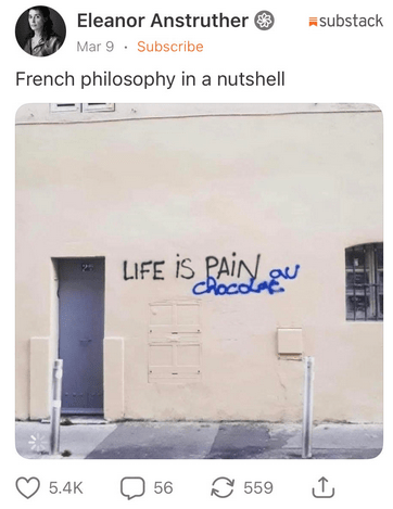 Au Revoir, March, the month of birthdays. The month where I’m the girl with the most cake. I fake it so hard I’m beyond fake. Here’s my favorite moment on Substack, a platform I don’t quite get, but I love what artists do there.